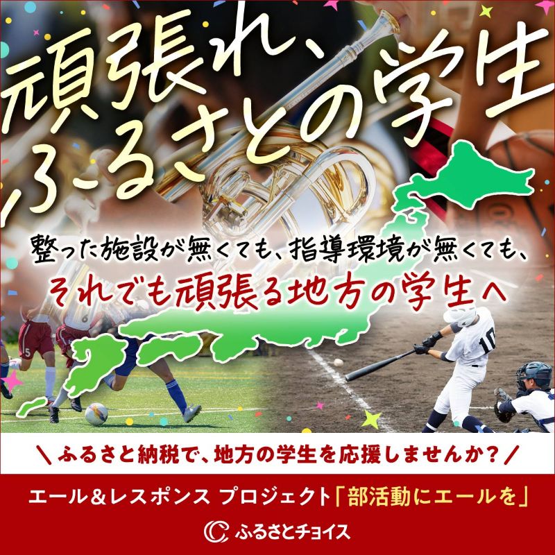 - 国内最大級のふるさと納税総合サイト「ふるさとチョイス」が提案する新しい若者応援のカタチ「部活動にエールを」を訴求するインパクトのある広告表現アイデア。